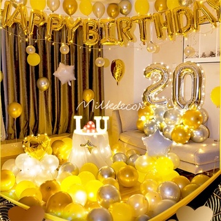 {Tunganhdecor} Set Bóng Trang Trí Sinh Nhật Tông Màu Vàng Bạc MS50 Tặng Đèn Led