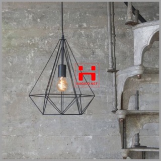 Đèn thả trang trí bàn ăn thả trần hình kim cương khung sắt