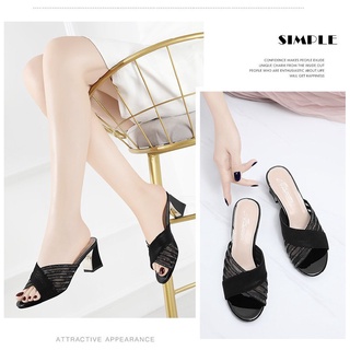 Dép Cao Gót Đế Dày Phối Lưới Thoáng Khí Đính Đá Thời Trang Mùa Hè 2022