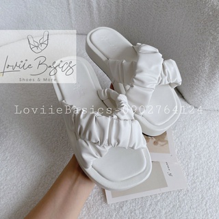 DÉP NỮ CAO CẤP LOVIIE BASICS - DÉP LÊ QUAI CHÉO NHÚM BÈO ĐẾ THẤP - GIÀY NỮ ĐẾ BẰNG QUAI THUN MŨI TRÒN 2P D220420