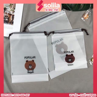 Túi dây rút đựng quần áo, giày dép đa năng chống nước có 3 size hình gấu nâu dễ thương tiện dụng - SOLILA.VN