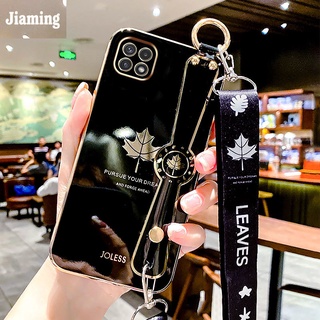 Ốp Điện Thoại Viền Lá Phong Mạ Điện Sang Trọng + Dây Đeo Cổ Tay Cho Samsung Galaxy A31 2020