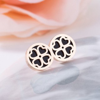 Bông Tai Hình Tròn Cỏ 4 Lá Titan Ko Đen TT 2470