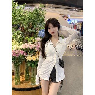 COZOK Áo sơ mi tay dài ôm eo dễ phối đồ hợp thời trang