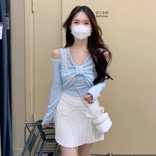Áo Thun Tay Dài Dáng Ôm Ngắn Hở Vai Màu Trơn Dễ Phối Đồ