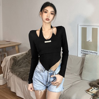 Áo thun COZOKC tay dài phối dây xích dáng ôm dễ phối đồ thời trang