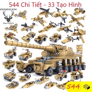 [544 chi tiết] Bộ đồ chơi xếp hình L.ego Xe TĂNG - 33 tạo hình - lắp ráp đồ chơi máy bay trực thăng xe quân sự