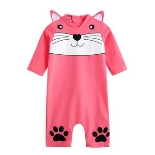 Bộ đồ bơi liền thân tay dài mèo hồng xinh xắn cho bé gái nhỏ