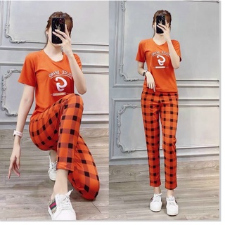 Bộ đồ mặc nhà áo cộc quần dài ống rộng mềm mát xịn