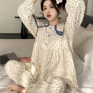 Bộ đồ ngủ dài tay họa tiết hoa phong cách thời trang Hàn Quốc cho nữ