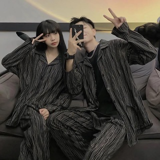 Take Talk Bộ Đồ Ngủ Lụa Lạnh Mỏng Mùa Hè Tay Cộc Kẻ Sọc Cao Cấp Cho Cặp Đôi Take Talk [Cool sense Technology]