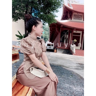 (HÌNH THẬT KHÁCH HÀNG) SET ĐI CHÙA GẤM TAY PHỒNG