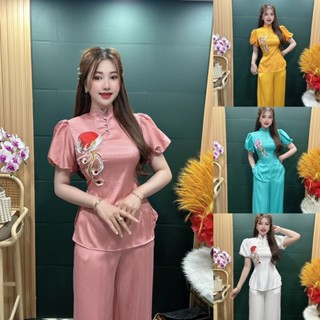 Đồ Lam Đi Chùa # Bộ viền hoa lụa Hàn 2# Quần Áo Nữ Cao Cấp
