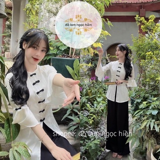 Bộ đồ bà ba cách tân đồ lam pháp phục nữ truyền thống cổ cao đi lễ chùa hàng loại 1 kèm quần may sẵn