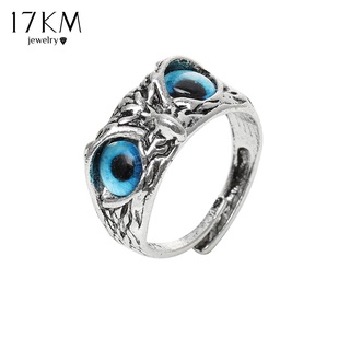 Nhẫn 17KM hình chim cú mắt màu lam vintage cho nam nữ