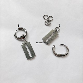 Khuyên tai titan unisex mặt lưỡi lam size lớn ko gỉ có loại kẹp