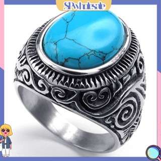 Nhẫn Thép Không Gỉ Đính Đá Ngọc Lam Lớn Phong Cách Cổ Điển Cho Nam