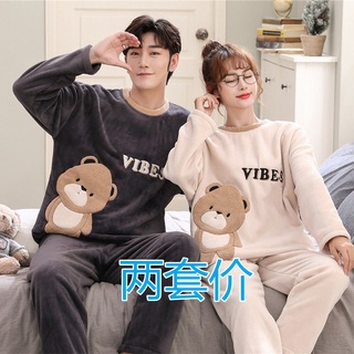 Bộ đồ ngủ vải nhung san hô dày giữ ấm thời trang thu đông dành cho cặp đôi 59Q