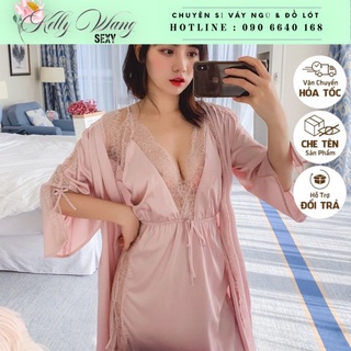 Sx 024-1 váy ngủ sexy kèm choàng - đồ ngủ lụa cao cấp -KellyWang