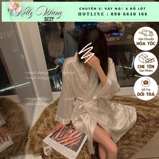 [KELLYWANG] SX877 - ÁO CHOÀNG NGỦ VẢI LỤA MÀU TRƠN PHỐI HỢP CÙNG VÁY NGỦ KÈM THẮT LƯNG