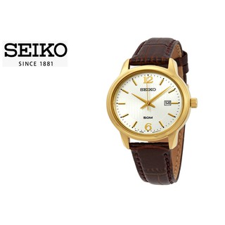 Đồng hồ nam Chính Hãng Seiko SUR114P1 - Dây Da - Mặt Số - 2 Kim Mạng Vàng - Bảo Hành