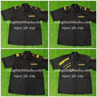 Áo đồng phục bảo vệ, vệ sĩ màu đen kèm cầu vai và 2 logo tay ngực
