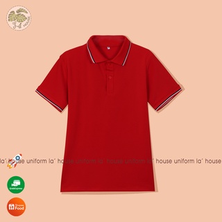 Áo thun đồng phục đỏ phối cổ viền 3 sọc cao cấp chất liệu cá sấu thái La' House Uniform
