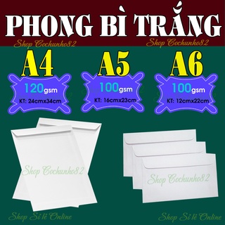 Phong bì Trắng A4 - A5 - A6 (100 chiếc/1 tập)