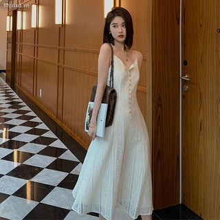 Đầm Hai Dây Phối Ren Màu Trắng Phong Cách Mới 2022 Thời Trang Mùa Xuân