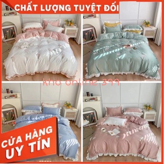 Bộ chăn ga gối lụa viền bèo sang trọng lịch sự, ga giường và vỏ gối chất lụa thoáng mát mềm mịn miễn phí bo chun