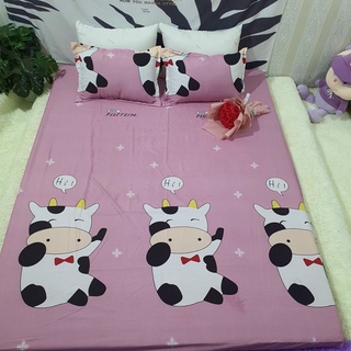 (Sale Hot) Bộ ga gối poly cotton loại đẹp mẫu Bò Hồng, drap giường bo chun bọc nệm (1 ga + 2 vỏ áo gối) giá rẻ