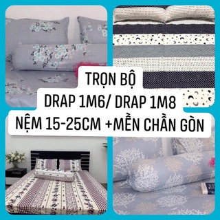 Drap + CHĂN chần gòn Thắng Lợi ( drap 1m6 , drap 1m8 nệm cao 15-25cm) (ga giường 5 món)