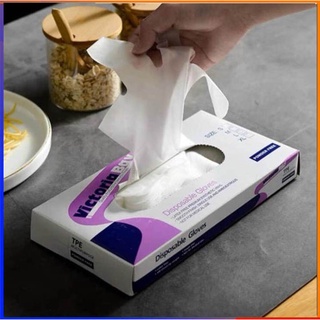 Hộp 100 găng tay Victoria Bay chất liệu TPE chính hãng siêu dai găng tay cao su rửa bát làm bếp vệ sinh không bột