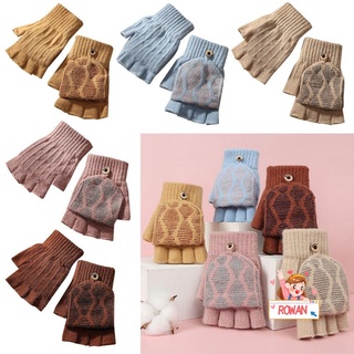 1 Cặp Găng Tay Dệt Kim Dày Dặn Co Giãn Bảo Vệ Ngón Tay Thời Trang Mùa Đông Cho Nữ