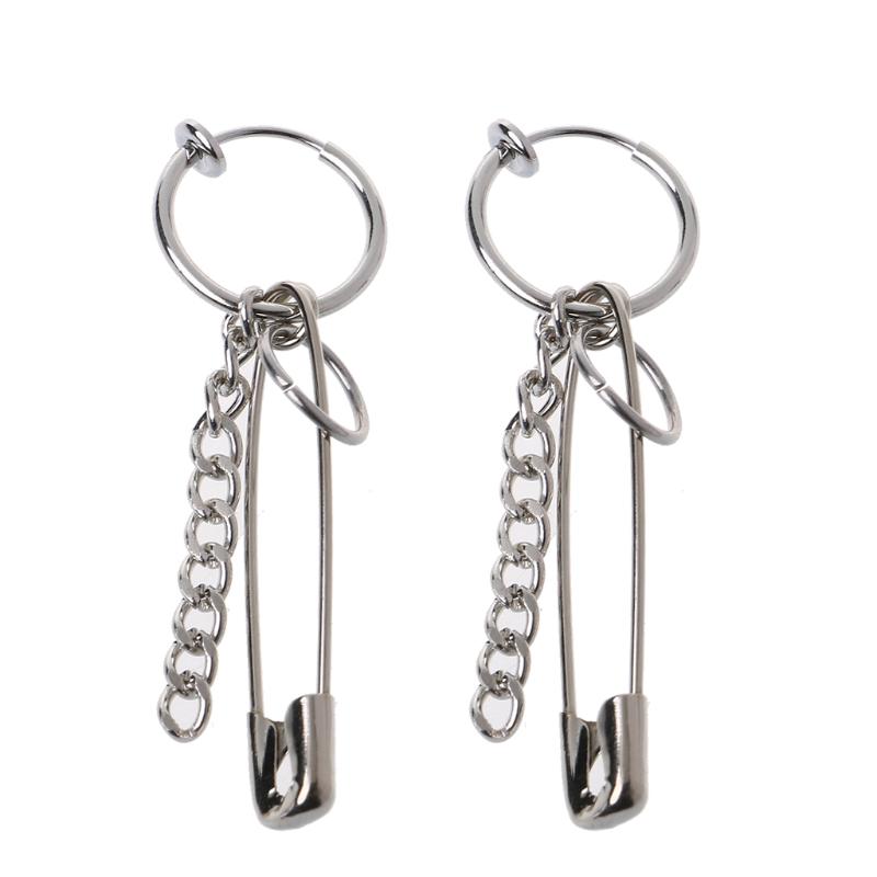 Đôi bông tai hình ghim băng mạ bạc cá tính thời trang