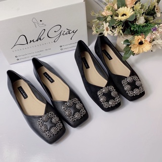 GB25 - Giày bệt, giày búp bê da lì mũi nhọn nơ khoá vuông đá đế cao su dẻo da mềm êm