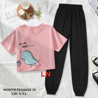Sét áo croptop trơn ngắn tay +quần bom LN12