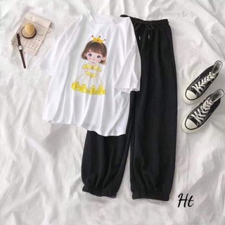 Sét áo trắng hình bé gái + quần bom xám TH6