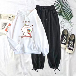 Sét Áo hoodie Cô gái tóc bím + quần Bom, Áo nỉ Unisex from rộng, Chất nỉ ấm mặc không xù, thiết kế phong cách - MODY