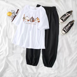 Sét áo phông Lợn n.ic.e + quần bom, Áo thun from rộng, Chất đẹp không xù, quần suông ống rộng, Sét bộ mặc ở nhà - MODY