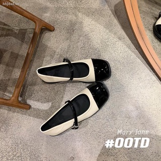 Giày búp bê Mary Jane mũi vuông phối màu phong cách retro xinh xắn thời trang xuân thu 2021 cho bạn gái