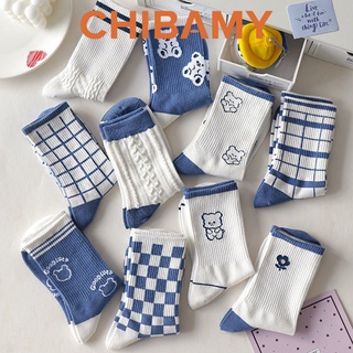 Tất vớ nữ Hàn Quốc cổ cao GẤU XANH phong cách vintage nhiều họa tiết kết hợp giày búp bê, giày thể thao CHIBAMY