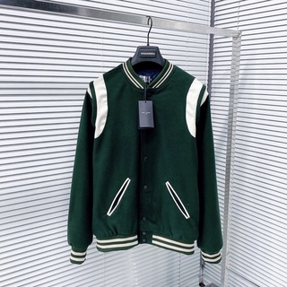 Áo khoác Teddy bomber sơn tùng nam nữ vải dạ lót gió thêu 2 sọc da hai vai dày dặn màu green xanh lá đậm hot