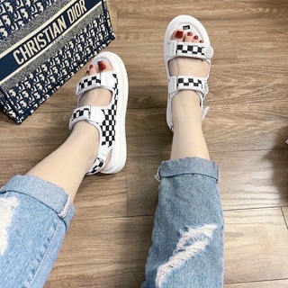 Giày sandal học sinh 2 quai Caro tag tròn quai dán dễ đi