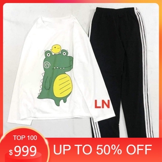 Sét áo khủng Long đội gà tay dài + quần ba sọc LN12 , Áo thun nam nữ, quần kaki, quần nữ, sét bộ mặc ở nhà MODY