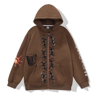 Áo Hoodie Travis Scott Phối Khóa Kéo Thiết Kế Mới Năng Động Thời Trang