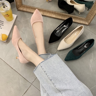 Giày Nhung Gót Thấp Thời Trang Công Sở Thanh Lịch Cho Nữ