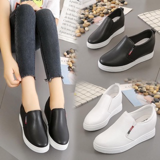 Giày Thể Thao Da Đế Dày 5CM Màu Trắng / Đen Phong Cách Hàn Quốc Thời Trang Mùa Hè 2023