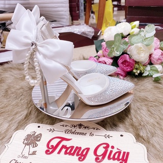 GIÀY CƯỚI CÓ QUAI NƠ NGỌC THẢ ĐÍNH ĐÁ CÓ SẴN