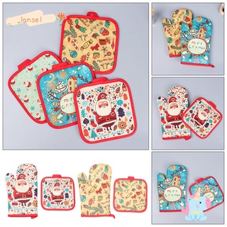 Set 2 Găng Tay Chịu Nhiệt Họa Tiết Ông Già Noel Dùng Cho Lò Vi Sóng